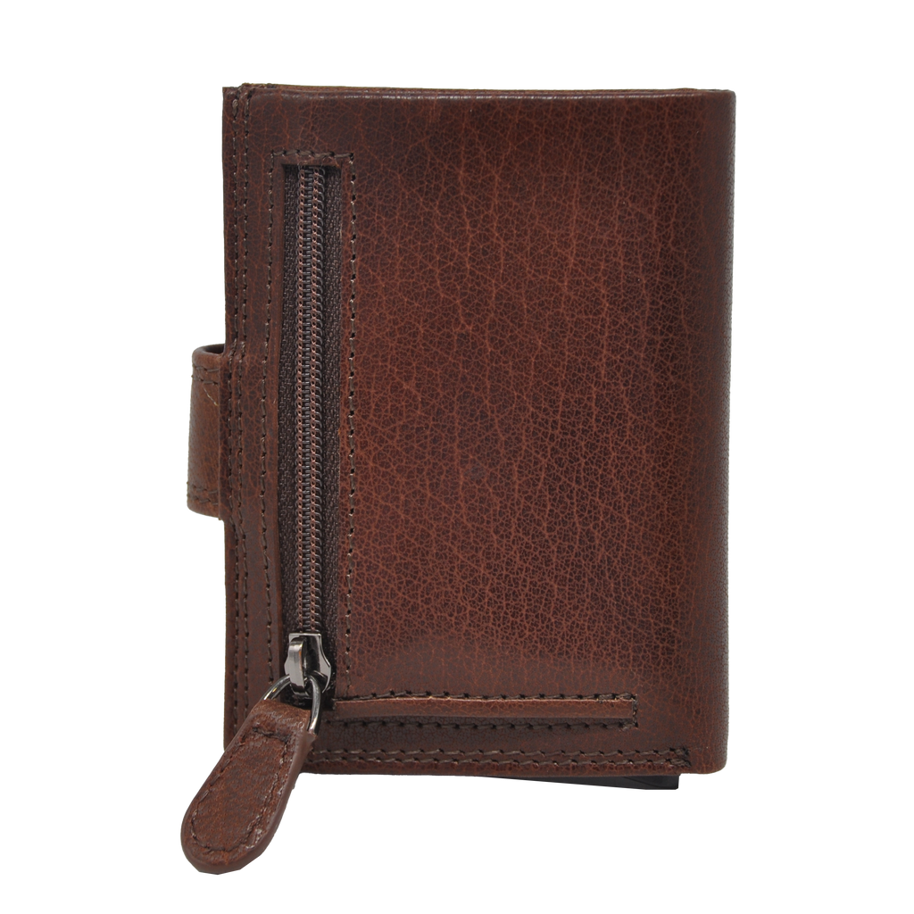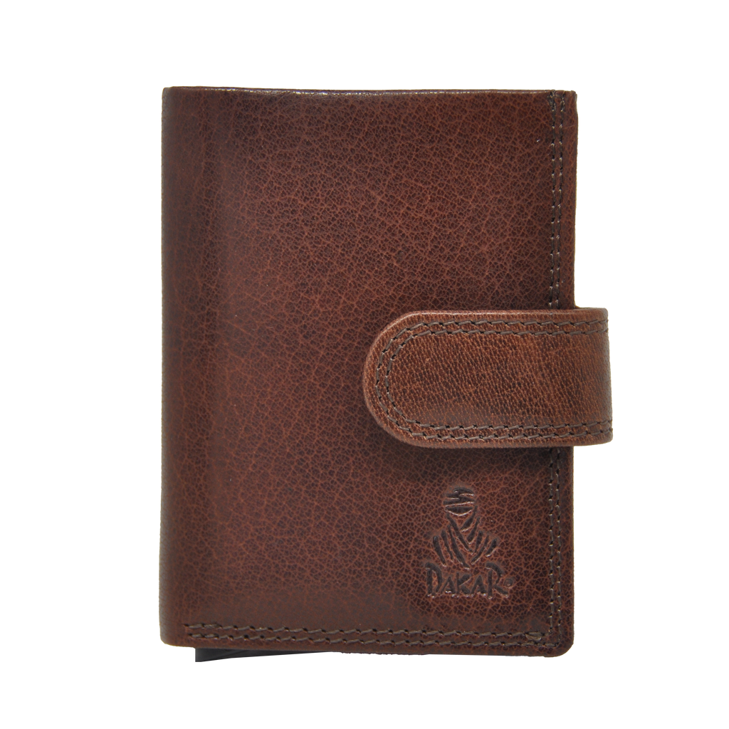 Dakar Wild Leather Credit Card Holder Metal Tube Brown